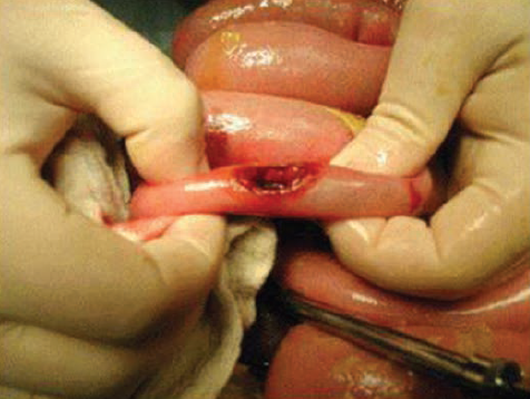 Terminal Ileal Perforation is a cause of obscure peritonitis, heralded by exacerbation of abdominal pain associated with tenderness, rigidity and guarding, most pronounced over the right iliac fossa. छोटी आंत के आखिरी हिस्से का छिद्र अस्पष्ट पेरिटोनिटिस का एक कारण है, जो नरमी, कठोरता और सतर्कता से जुड़े पेट दर्द के तेज होने की शुरुआत करता है, जो right iliac fossa पर सबसे अधिक स्पष्ट होता है।