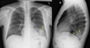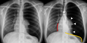 A pneumothorax means a collapsed lung. न्यूमोथोरैक्स का अर्थ है “ढह गया फेफड़ा”। A pneumothorax occurs when air leaks into the space between your lung and chest wall. न्यूमोथोरैक्स तब होता है जब हवा आपके फेफड़े और छाती की दीवार के बीच की जगह में लीक हो जाती है। This air pushes on the outside of your lung and makes it collapse. यह हवा आपके फेफड़े को बाहर से धकेलती है और इसे ढहा देती है। A pneumothorax can be a complete lung collapse or a collapse of only a portion of the lung. एक न्यूमोथोरैक्स फेफड़े का पूर्ण पतन या फेफड़े के केवल एक हिस्से का पतन हो सकता है।